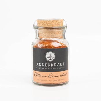 Chili con Carne scharf – Gewürzmischung im Glas 80 g mit Korkdeckel (Ankerkraut)
