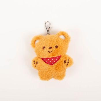 Der Anhänger besteht aus 100 % Polyester und fühlt sich angenehm weich an. Das braune Fell, die gestickten Pfötchendetails und das rot-weiße Halstuch machen ihn zu einem charmanten Hingucker. Gerade diese Kombination aus flauschiger Oberfläche und verspieltem Design verleiht dem Schlüsselanhänger seinen besonderen Look.