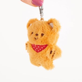 Flauschiger Schlüsselanhänger von Rex London in Form eines niedlichen Teddybären mit braunem Fell und rot-weißem Halstuch