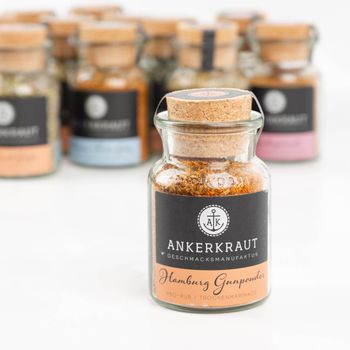 Hamburger Gunpowder Gewürzmischung im Glas 90g mit Korkdeckel von Ankerkraut