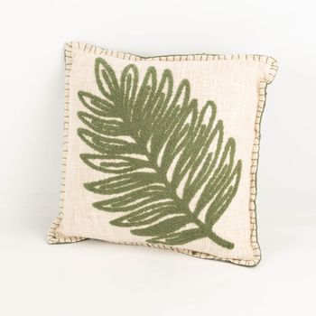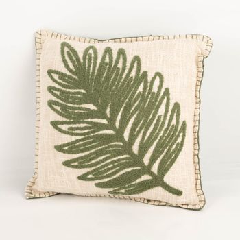 Dekokissen mit getuftetem Monstera-Blatt aus reiner Baumwolle
