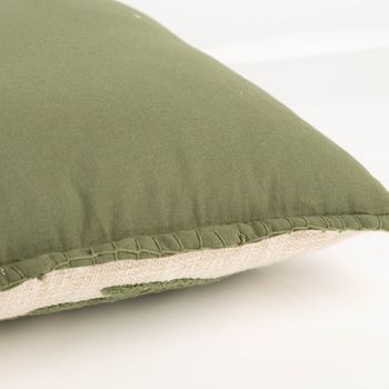 Dank der natürlichen Farbgebung in Beige und Grün passt das Dekokissen hervorragend zu vielen Einrichtungsstilen: