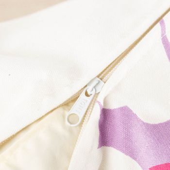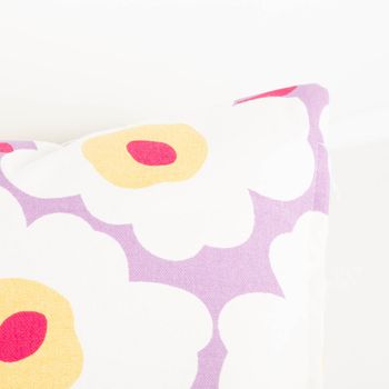 Setze frische Akzente mit der Kissenhülle Canvas in Lila mit sommerlichem Blumendessin auf der Vorderseite! Das stilvolle Muster aus weißen Blüten mit frischen Akzenten in Pink und Gelb verleiht deinem Zuhause eine fröhliche, leichte Atmosphäre. Die Rückseite in Uni-Weiß sorgt für eine dezente Alternative, sodass du die Kissenhülle je nach Stimmung oder Einrichtung flexibel einsetzen kannst. Gefertigt aus robuster Canvas-Baumwolle, überzeugt diese Kissenhülle nicht nur durch ihr Design, sondern auch durch ihre Langlebigkeit und Pflegeleichtigkeit.