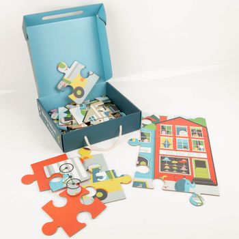 Großes Kinderpuzzle mit detailreicher Straßenszene
