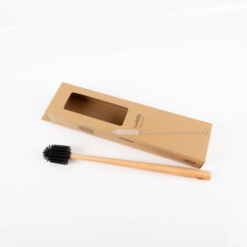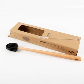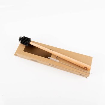 Große Bürste aus Holz & Silikon – erreicht auch schwer zugängliche Stellen im Flascheninneren