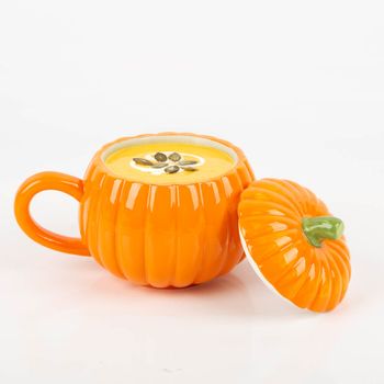 Suppentasse mit Deckel Kürbis orange 11x13cm Dolomit handbemalt von Sass & Belle