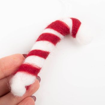 Der weiche Filz sorgt für eine gemütliche, natürliche Optik, die wunderbar zu skandinavischer oder nostalgischer Weihnachtsdekoration passt. Mit der praktischen Aufhängung lässt sich die Zuckerstange leicht an Zweigen, Kränzen oder Geschenkpaketen befestigen.