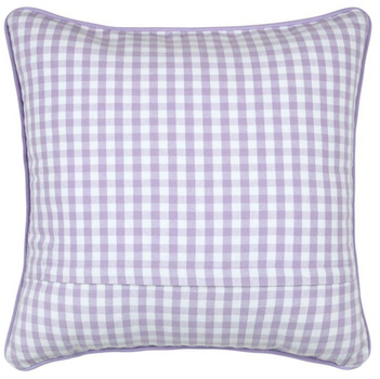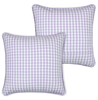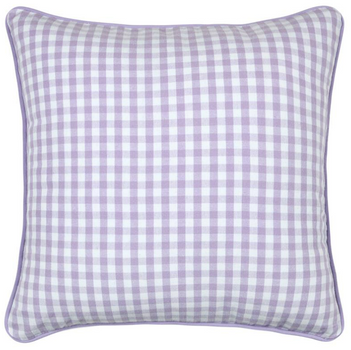Kissen 45 x 45 cm in Weiß und Lila mit zeitlosem Karo-Dessin und naturfarbener Kederumrandung für gemütliche Wohnakzente mit harmonischer Ausstrahlung