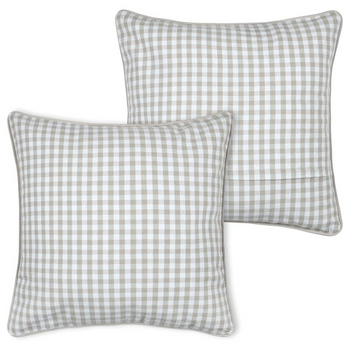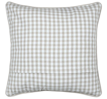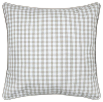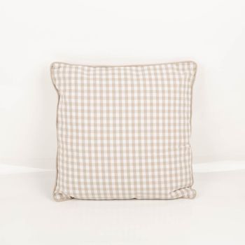 Kissen 45 x 45 cm in Weiß und Natur mit zeitlosem Karo-Dessin und naturfarbener Kederumrandung für gemütliche Wohnakzente mit harmonischer Ausstrahlung