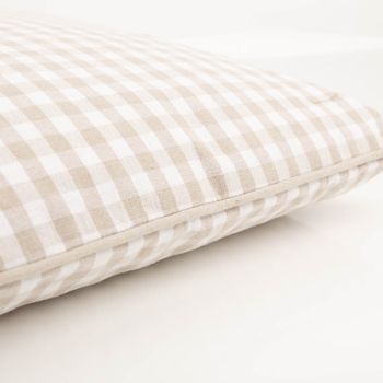 Das kleine Karomuster mit ca. 1 x 1 cm wirkt ruhig, wohnlich und vielseitig kombinierbar mit weiteren Kissen, Decken und Wohntextilien in Naturtönen