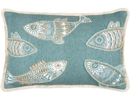 Dekokissen Fische Perlen Applikationen Fransenrand 35x50 cm