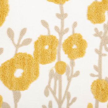Du suchst ein Kissen, das freundlich, natürlich und dekorativ wirkt? Dieses rechteckige Kissen in 40 x 60 cm verbindet eine ruhige Grundfarbe in Wollweiß mit getufteten Blüten in Gelb und fein gestickten Blättern und Stielen in Beige. So entsteht ein florales Design, das Wärme ausstrahlt und gleichzeitig angenehm zurückhaltend bleibt.