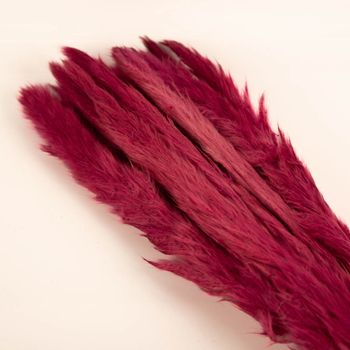 Mit diesem pinkfarbigen Pampasgras setzt du eindrucksvolle Akzente in deiner Deko. Das Bündel besteht aus 15 Stielen, die durch ihre kräftige Farbe und flauschige Struktur sofort ins Auge fallen. Mit einer Länge von ca. 70–80 cm eignet sich das Pampasgras perfekt für Vasen, Solo-Arrangements oder als Teil eines farbigen Trockenblumenstraußes.