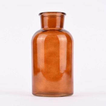 Die Form der Flasche ist zylinderförmig und erinnert durch die unregelmäßige, braune Färbung an ein klassisches Apothekerglas. In dieser tollen Deko Flasche ist ein kleines Blumenarrangement perfekt dekoriert und setzt wunderbare farbliche Akzente in deinem Zuhause!